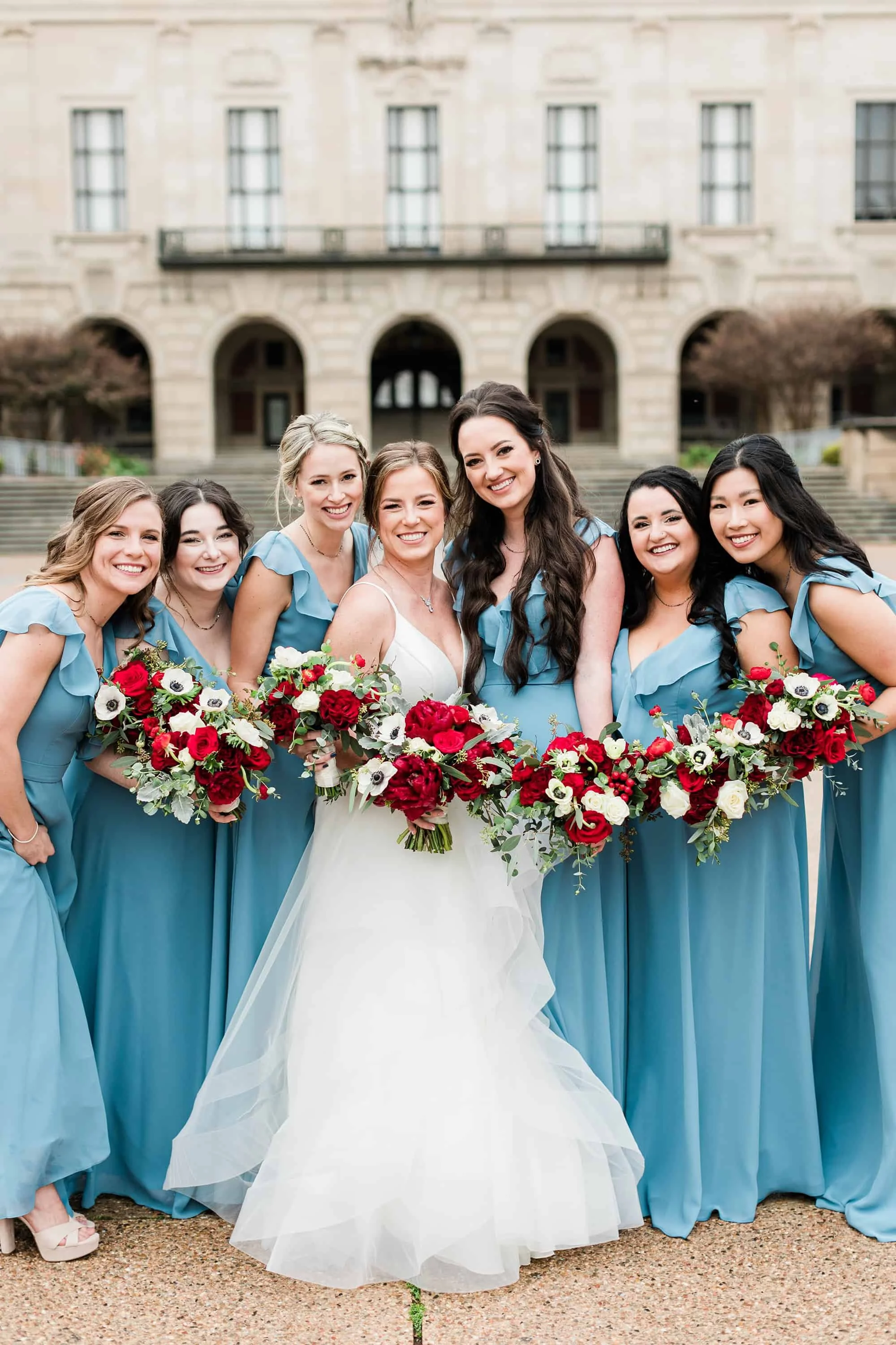 bride & groom with all bridesmaids, all groomsmen, all flower girl(s), & all ring bearer(s)